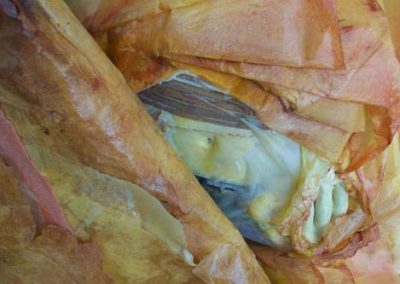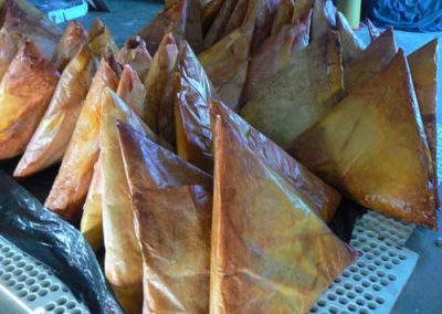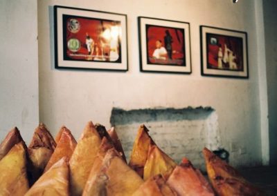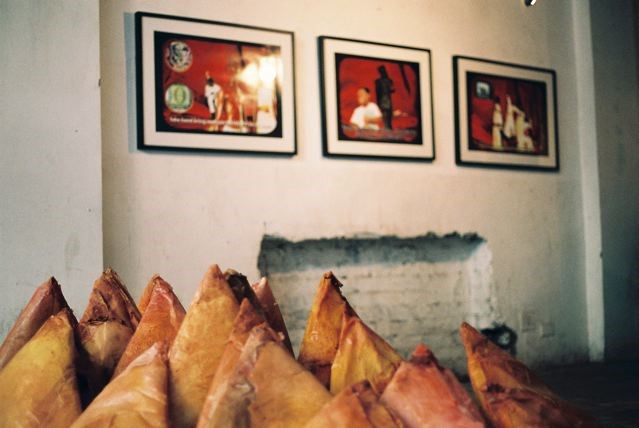 Aware of the outsider’s inaccurate assumption that Bollywood represents all that is Indian, I searched for an intertextual thread existing between such a variety of difference in this rich mix of life in film. Drawing on the parallels between food and film, as both are modes of instant gratification, the samoosa seemed the most obviously delicious object to unfold. The triangular-shaped pastry is definitively associated with the Indian community in Southern Africa and serves as a common denominator across vastly differing religious practices, which often have strict rules about food.